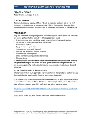 The ADS Concealed Carry Course is a comprehensive course that is broken into 11 sections that is meant not only to prepare you. We offer a variety of classes to firearm owners of all skill levels. All inclusive concealed carry class 7999.